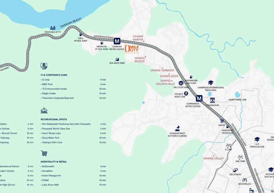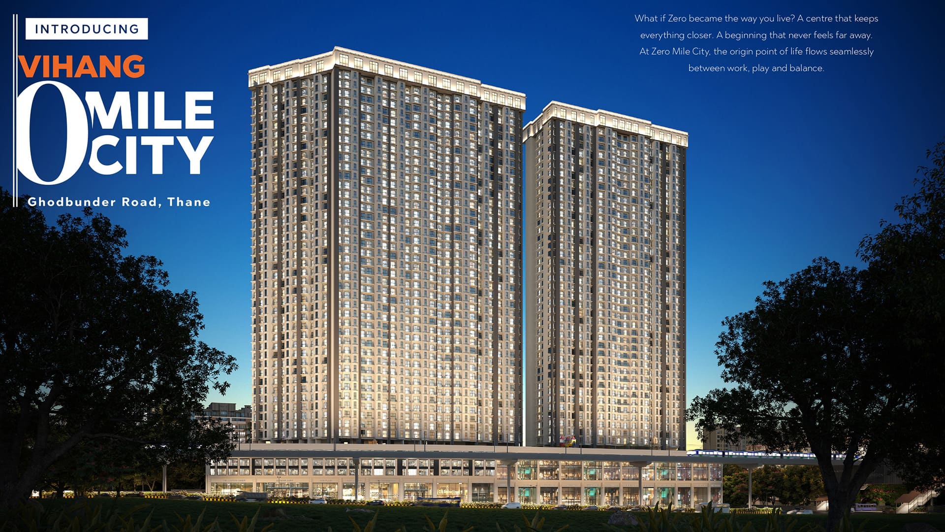 Vihang Zero(0) Mile City is presented as a contemporary urban destination located along one of Thane’s most well-connected corridors. The project combines residential living with commercial spaces, aiming to create a self-sustained environment that supports both convenience and long-term value. The messaging clearly targets buyers looking for city proximity without compromising on planning and infrastructure.
